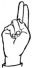 На ћирилици написано ДАВИД МЕЋАВА састоји се из 11 слова [?]. Исписано ћириличном једноручном азбуком за глувонеме:
